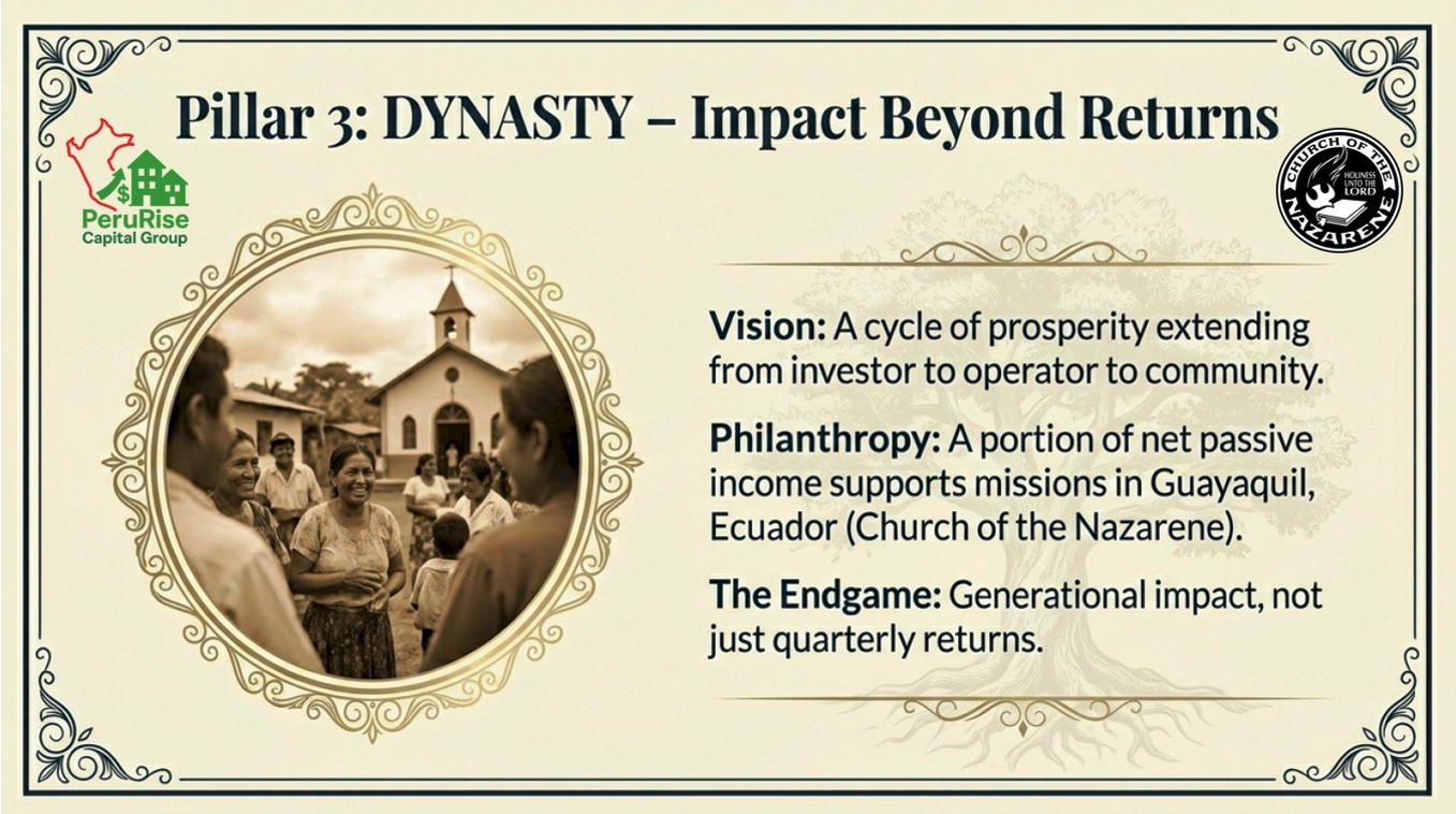 We believe real estate is more than a financial vehicle—it’s a tool to transform lives. A portion of our net profits goes directly to fund mission projects in South America through our partnership with the Church of the Nazarene. Our residents, investors, and partners all become part of something bigger: expanding God’s Kingdom while creating long-term wealth and quality housing.